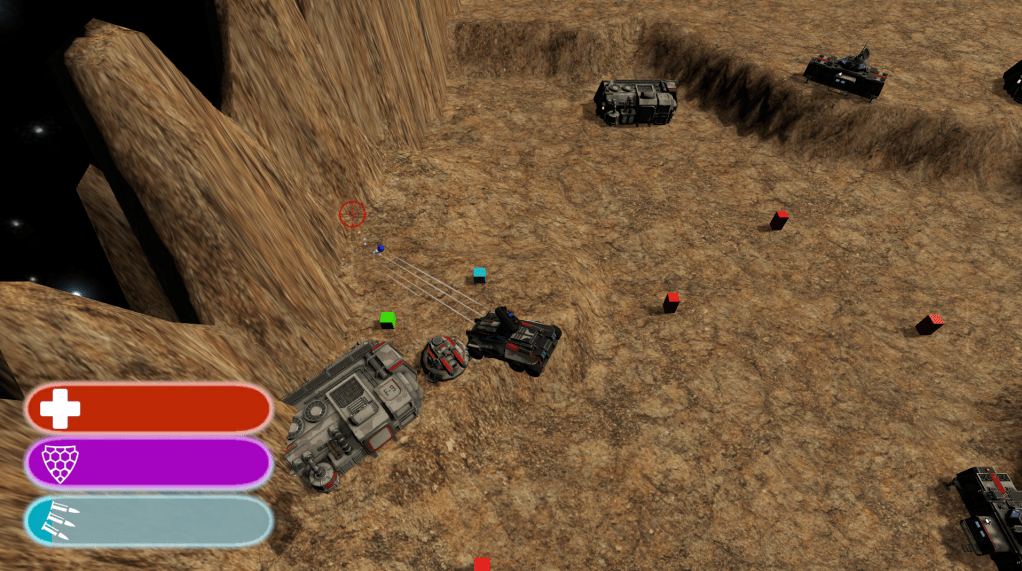 - player vehicle that can drive, shoot, scan enemies, use nitro, jump, can control itself while in air